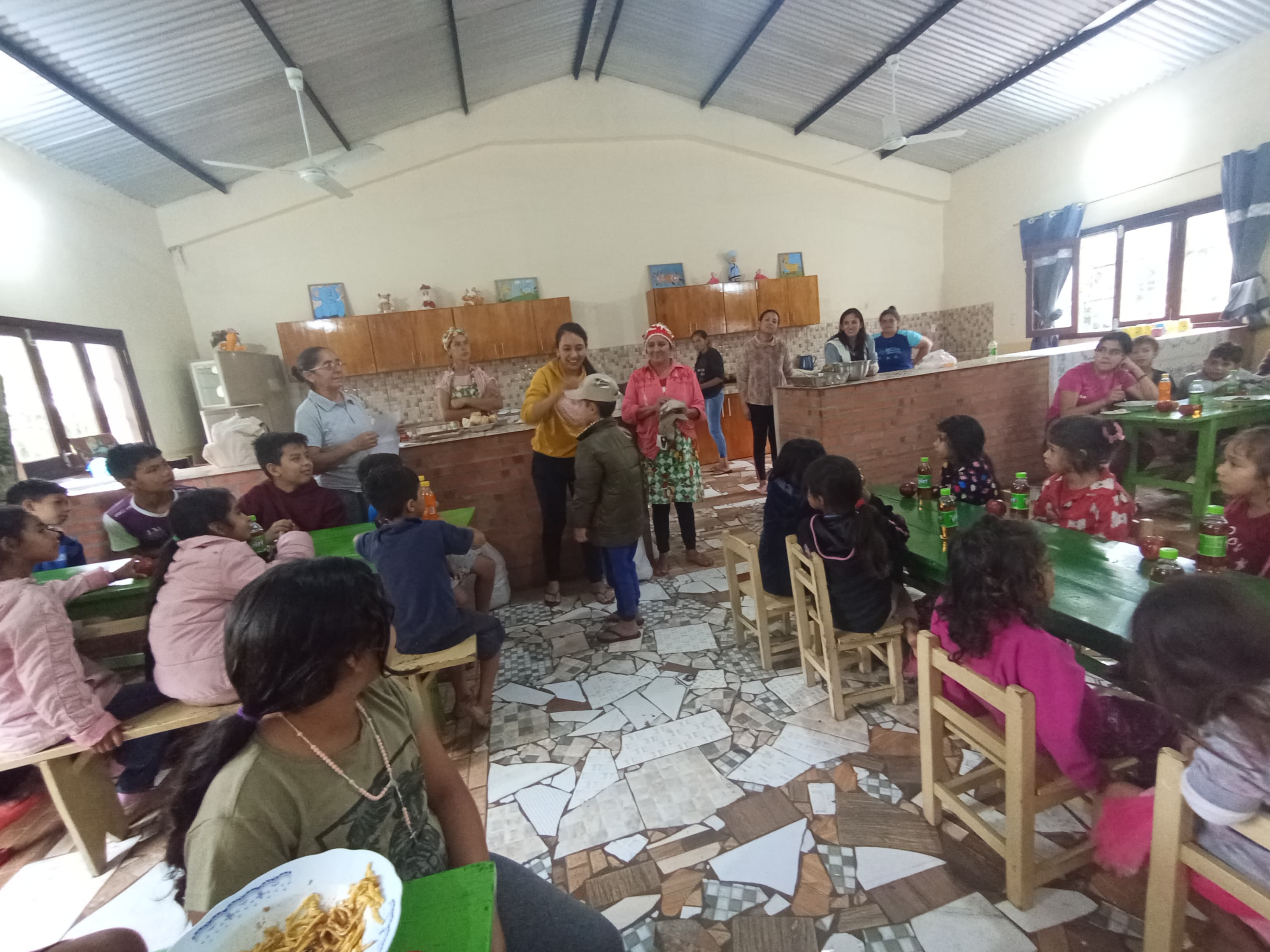Die überwiegende Mehrheit der in den ersten Monaten des Jahres angemeldeten Kinder ist zum Abschiedsmittagessen gekommen. In den letzten zwei Wochen haben zusätzlich ca. 10 bis 12 Kinder den Hogar besucht, welche sich auch dem Festessen angeschlossen haben.